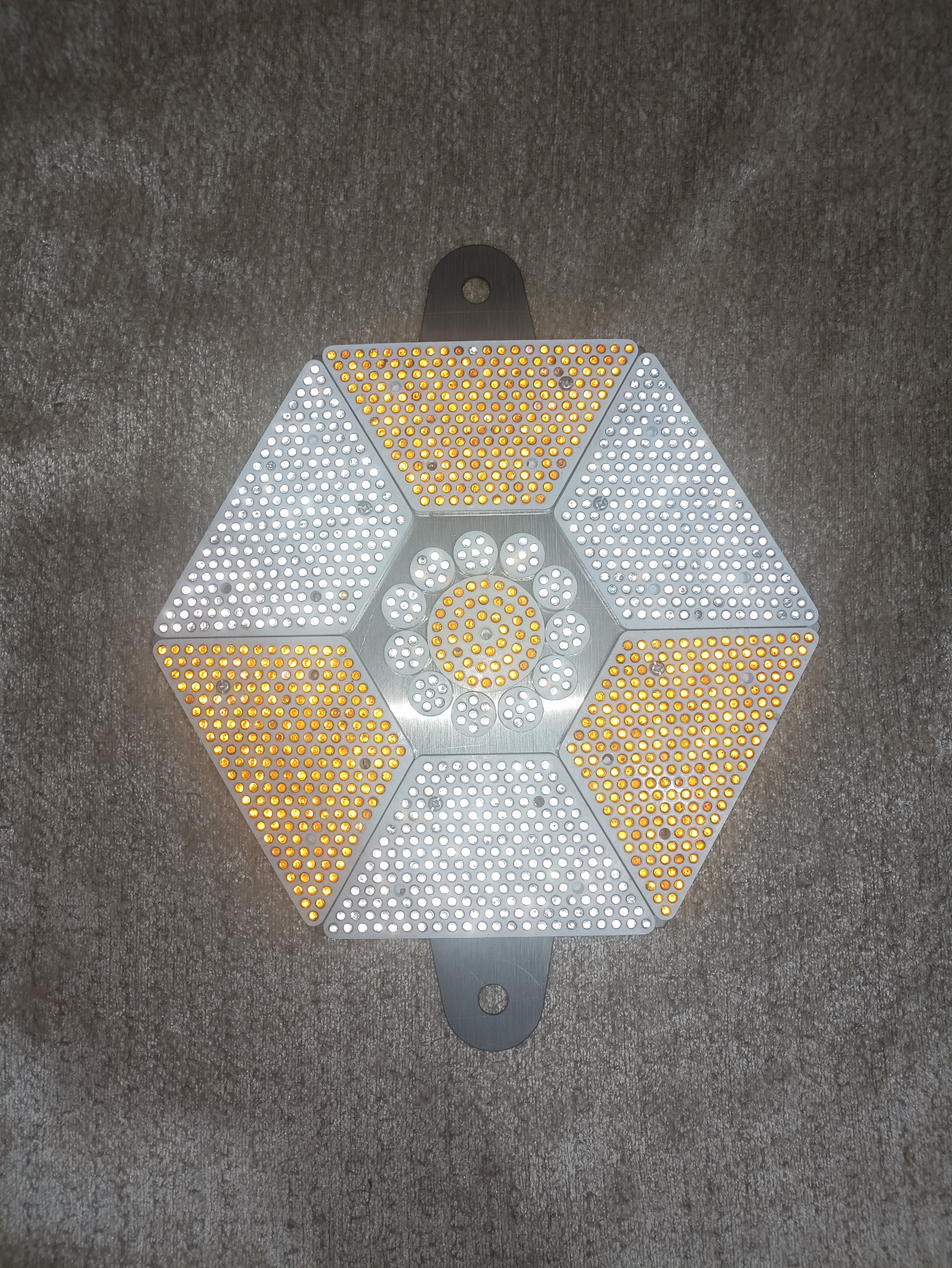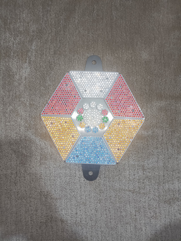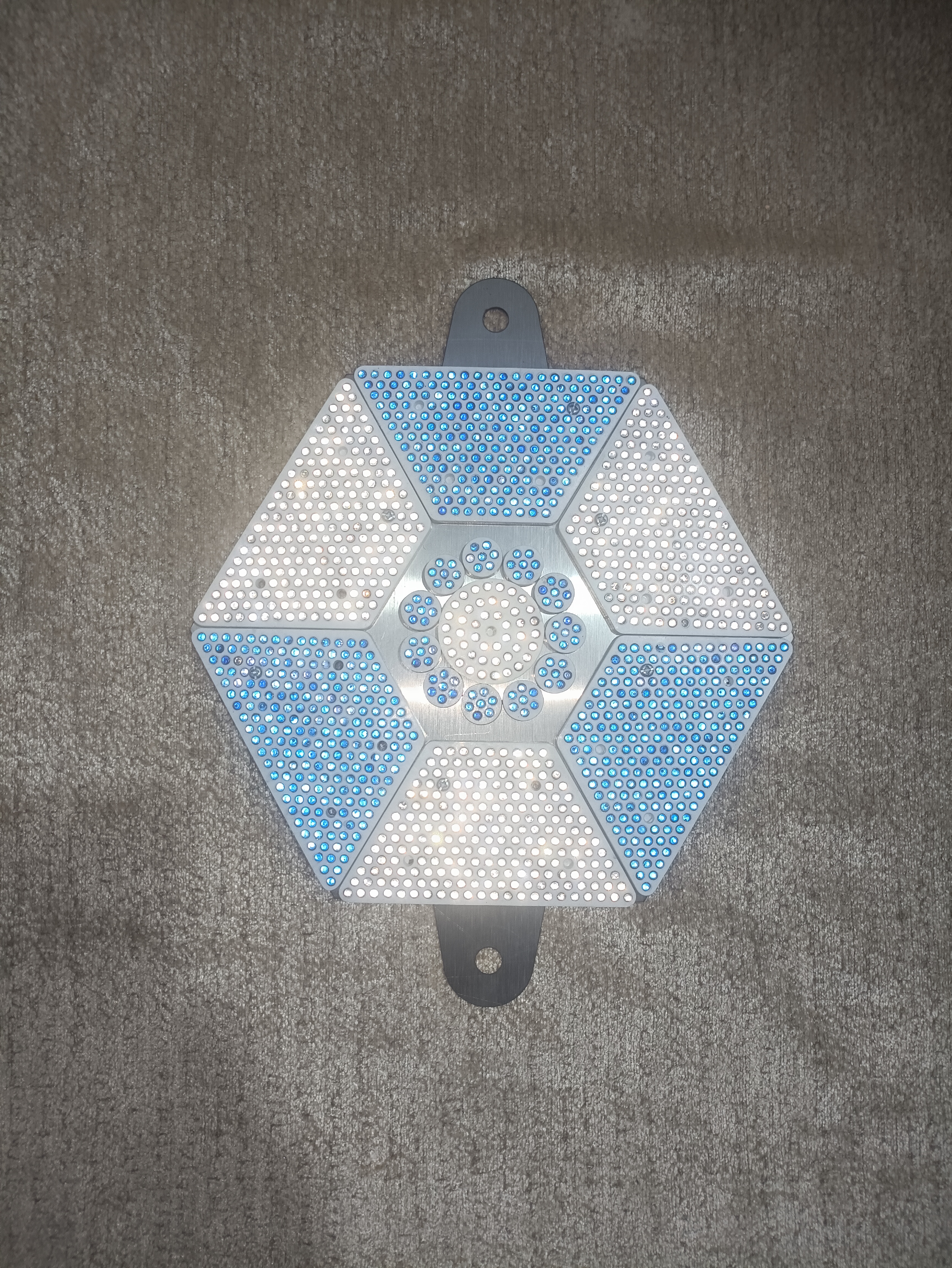 هر محصول شامل ۶ عدد ذوزنقه پروانهای ۲۱۳ نگین به همراه یک عدد سکه ای ۴۵ نگین و ۱۱ عدد شبرنگ سکه ای هفت نگین و یک شاسی فلزی استیل ضد زنگ میباشد .