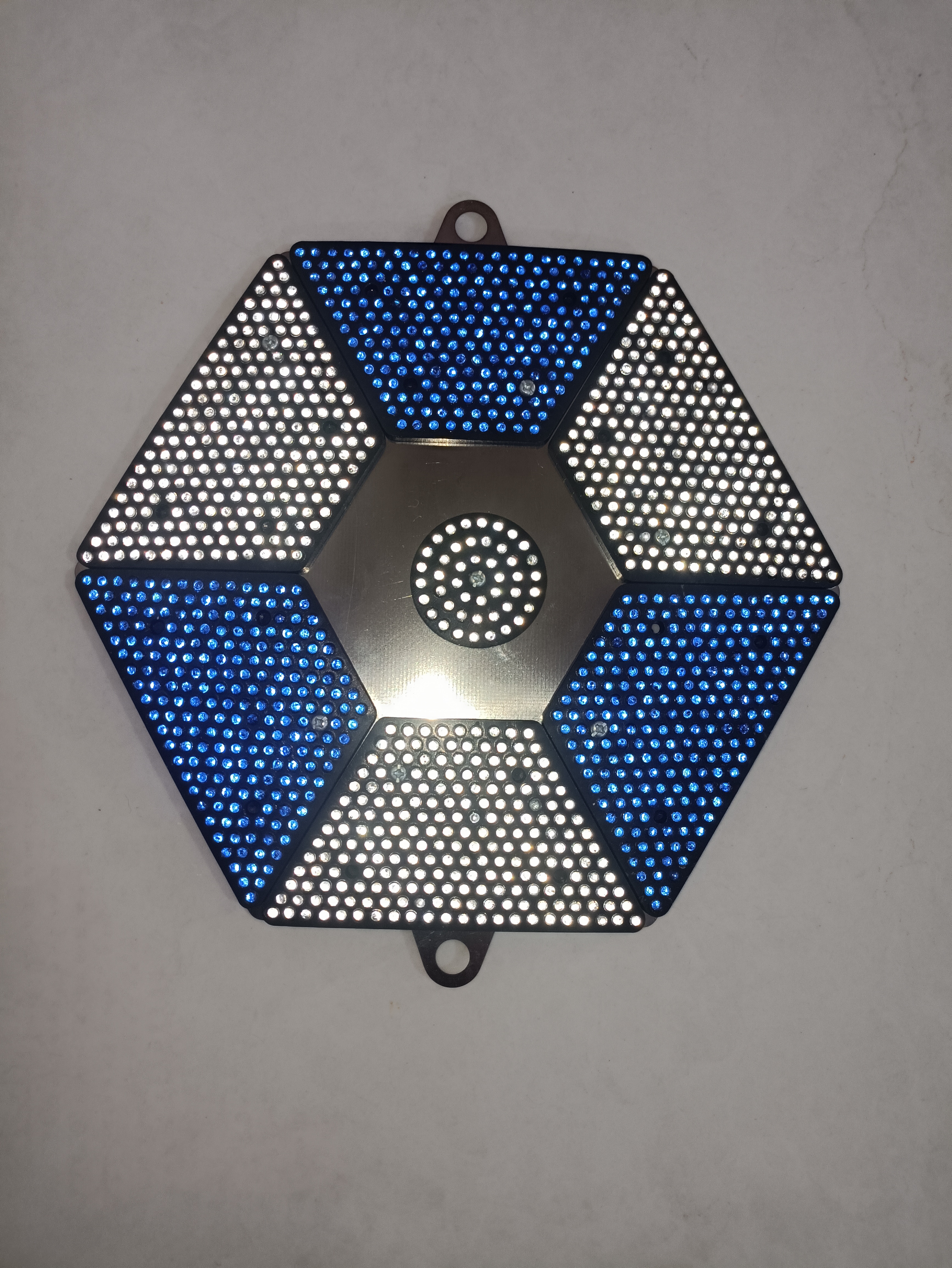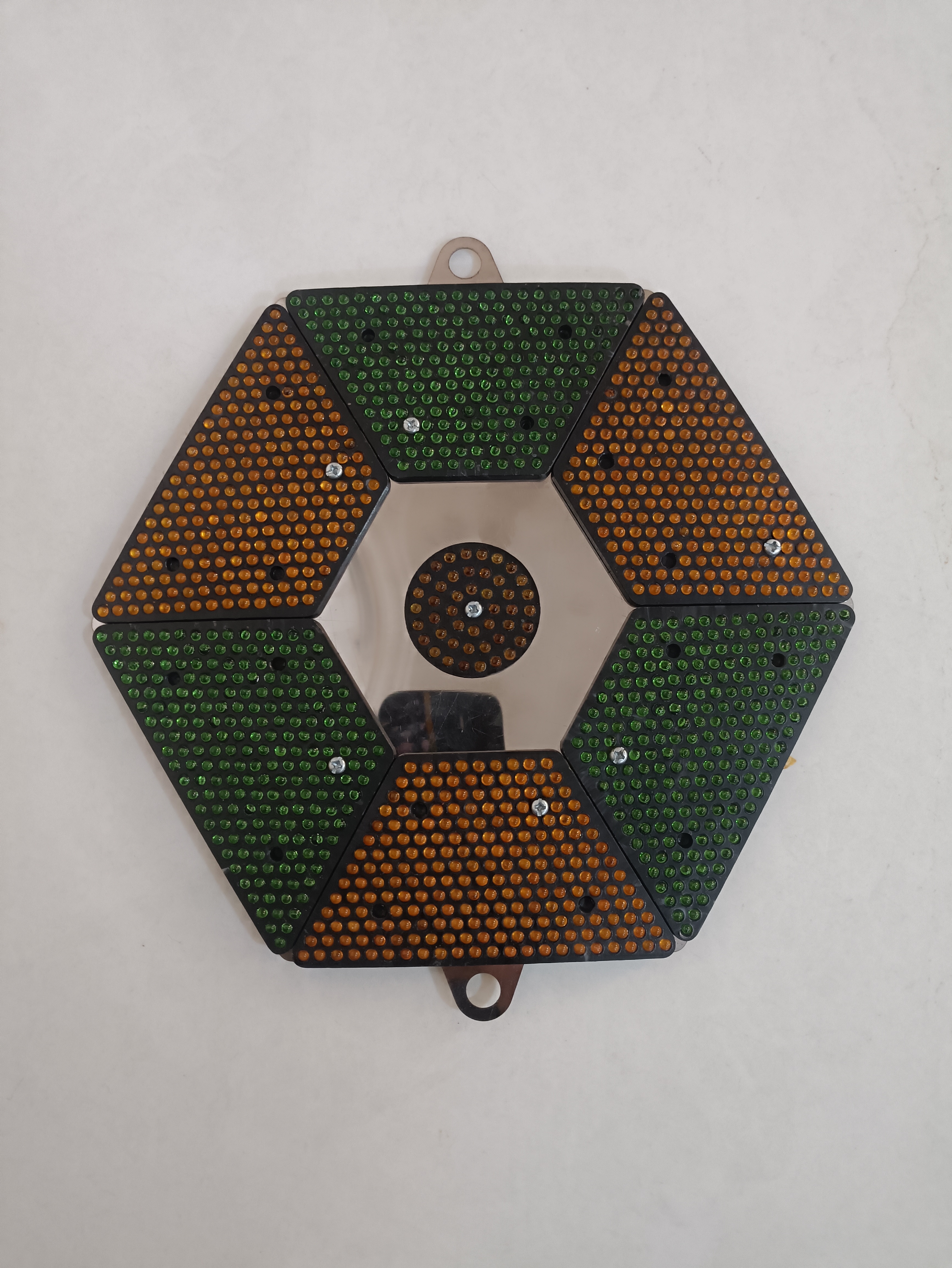 هر محصول شامل ۶ عدد ذوزنقه پروانهای ۲۱۳ نگین به همراه یک عدد سکه ای ۴۵ نگین و یک شاسی فلزی استیل ضد زنگ میباشد .